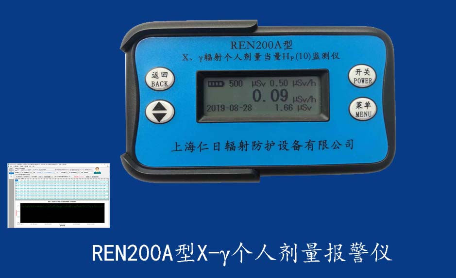 REN200A型X、γ輻射個人劑量當(dāng)量HP(10)監(jiān)測儀(簡稱:個人劑量報警儀)內(nèi)置高靈敏度蓋格計數(shù)管為探測器,主要用來監(jiān)測各種放射性工作場所的X、γ以及硬β射線的輻射,具有響應(yīng)快,測量范圍寬的特點(diǎn)。能顯示工作場所的劑量當(dāng)量率和累積劑量,更換電池時,日期及累積數(shù)據(jù)能永久保存。可選配RenRiPersonal個人劑量管理軟件,該軟件可存儲多個人的歷史數(shù)據(jù),能記錄日累積、月累積、年累積、輻照時長、計算平均劑量率、扣除或不扣除本底輻射,且以文字和圖譜的方式展現(xiàn)數(shù)據(jù)。廣泛應(yīng)用于核電站、加速器、鋼鐵、化工、同位素應(yīng)用、工業(yè)X、γ無損探傷、放射醫(yī)療、鈷源治療、γ輻照、放射性實(shí)驗(yàn)室、核設(shè)施周圍環(huán)境監(jiān)測等領(lǐng)域中的工作人員進(jìn)行個人安全防護(hù)監(jiān)測及放射性提示。&nb